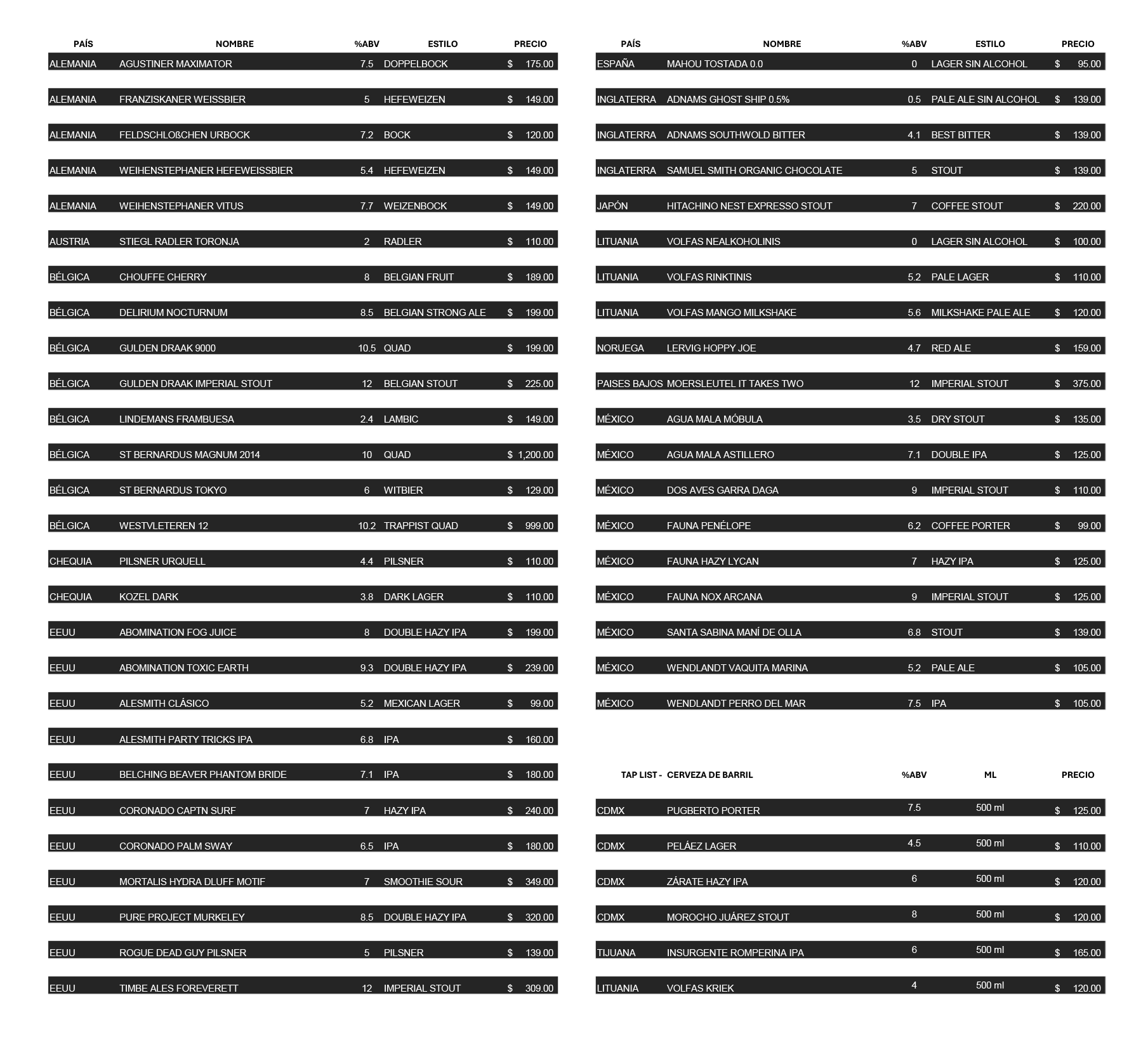 LA VENTA DE CERVEZA ES SOLO CON ALIMENTOS